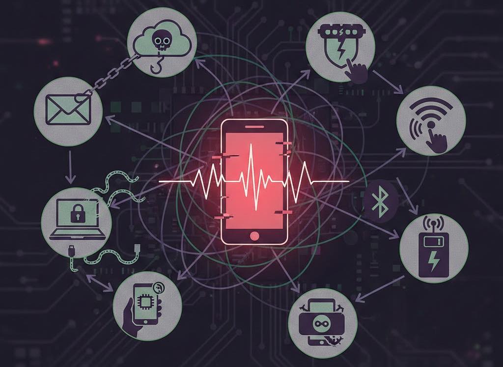Путей заражения несколько, и большинство из них не требуют, чтобы вы что-то скачивали сами: Zero-click атаки — наиболее опасный вид. Вредоносный код эксплуатирует уязвимость в системе и устанавливается без какого-либо взаимодействия с вашей стороны. Именно так работает Pegasus. Вредоносные приложения — spyware маскируется под полезные утилиты, игры или VPN-клиенты, особенно распространённые за пределами официальных магазинов. Фишинг через SMS и мессенджеры — ссылка в сообщении ведёт на заражённый сайт, который устанавливает малварь через уязвимость браузера. Публичный Wi-Fi — поддельные точки доступа перехватывают трафик или внедряют вредоносный код в незащищённые соединения. Физический доступ к устройству — если телефон разблокирован и на него установили приложение для слежки, обнаружить его крайне сложно.